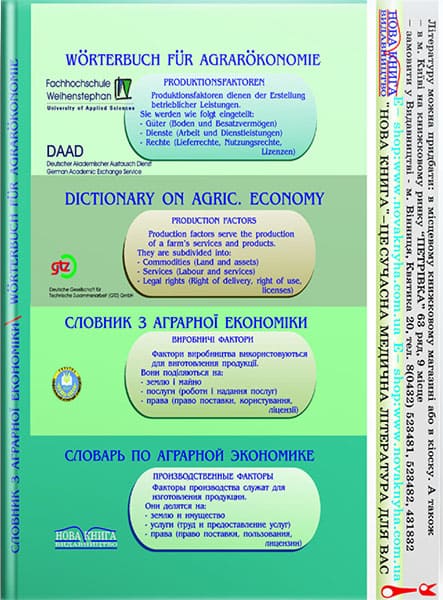 Словник містить терміни, що застосовуються в різних розділах економічної науки, включаючи форми господарювання, витрати та виробничі результати, прибутковість, вартісні категорії та натуральні економічні показники. У словнику приведені основні терміни з планування, обліку, аналізу, фінансування, інвестування тощо. Тлумачний словник скерований на потреби у спілкуванні бізнесменів, науковців, викладачів, магістрів та студентів з питань аграрного менеджменту та економіки.