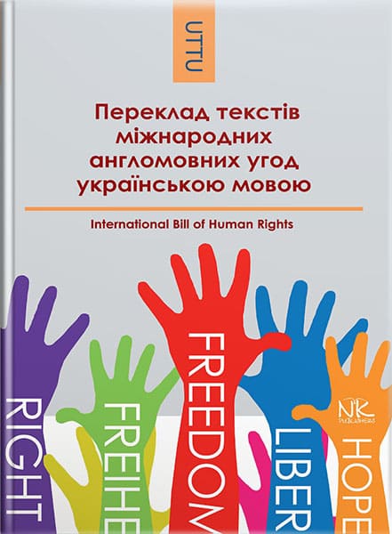 Посібник побудований на автентичному матеріалі і охоплює три розділи, які за змістом відносятся до найголовніших міжнарожних угод у галузі прав людини (Загальна декларація прав людини, Міжнародний пакт про громадській політичні права, Міжнародний пакт про економічні, соціальні і культурні права), забезпечуючи засвоєння фонових знань та знайомство з найбільш вживаною термінологією. Система різноманітних вправ, побудована за циклічним принципом, наявність двомовних тематичних словників у кожному уроці, абеткового словника наприкінці посібника створюють сприятливі умови для ефективного засвоєння змісту посібника в класі і надійного самоконтролю під час роботи вдома. Для студентів філологічних і перекладацьких відділень (факультетів) університетів і тих, що спеціалізуються у галузях міжнародного права, міжнародних відносин, суспільних наук, фахівців, які прагнуть вдосконалити власні навички та вміння перекладу суспільно-політичної літератури, а також для перекладачів.