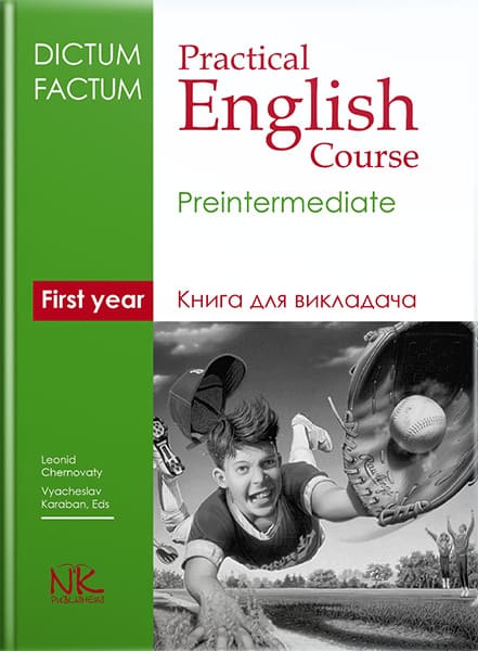 Книга для викладача до практичного курсу англійської мови для студентів першого курсу вищих закладів освіти (філологічні спеціальності та спеціальність “Переклад”) має на меті допомогти викладачам у роботі зі згаданим підручником. До її змісту ввійшли “Вступ”, який частково повторює інформацію, що міститсь у передмові до підручника, ключі до найбільш складних вправ підручника, а також транскрипт текстів для навчання аудіювання, які записані на аудіокасету. Для викладачів вищих навчальних закладів, що працюють з підручником для студентів першого курсу вищих закладів освіти (філологічні спеціальності та спеціальність “Переклад”) (серія Dictum Factum, автори Черноватий Л.М., Карабан В.І., Набокова І.Ю., Рябих М.В.)