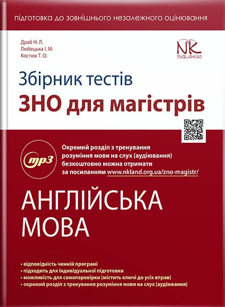 Посібник розроблений для підготовки студентів до зовнішнього незалежного оцінювання з англійської мови. Студенти можуть самостійно підготуватися до виконання тестових завданнь. Матеріал посібника укладено відповідно до чинної програми з англійської мови для вищих закладів освіти. Посібник містить 10 комплексних тестів і ключі до них. Посібник може використовуватися як для самостійної роботи, так і для роботи в університетах, індивідуальних занять з викладачем.